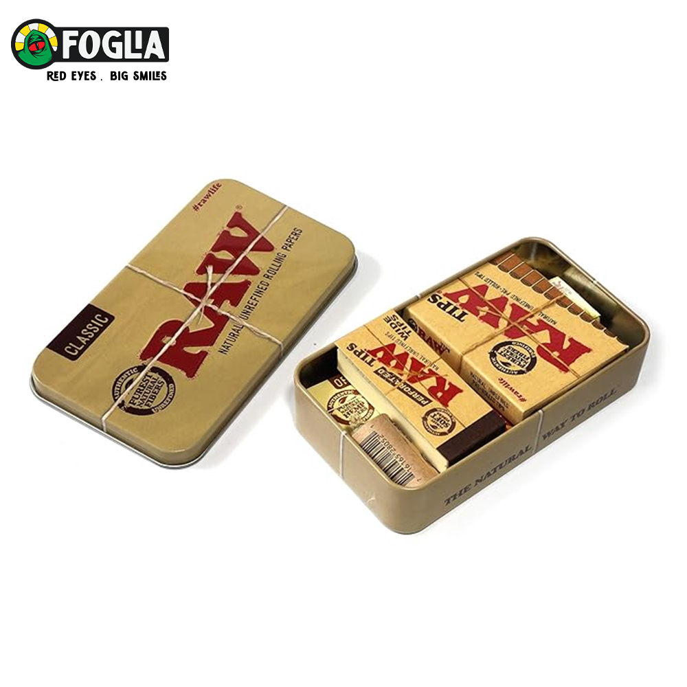 RAW Starter Tin Box là bộ phụ kiện “all-in-one” được nhiều nhà bán lẻ quốc tế phân phối, bao gồm đầy đủ giấy, tips và hemp wick, tất cả được sắp xếp gọn gàng trong một chiếc hộp thiếc RAW Classic. Đây là lựa chọn tối ưu cho những ai yêu thích sự gọn gàng, tiện dụng và tinh thần mộc mạc tự nhiên của RAW.